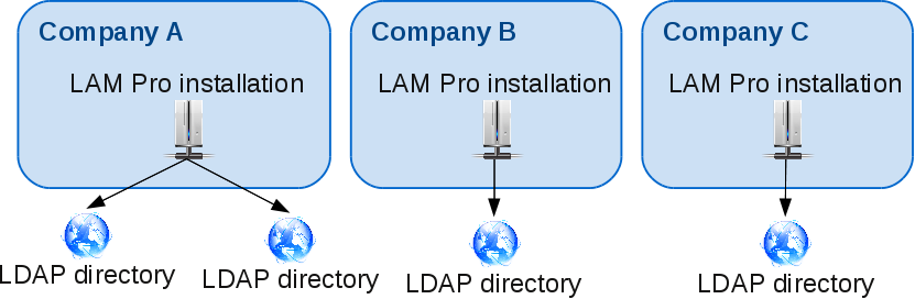 This single installation can be used to manage an unlimited number of LDAP servers by configuring multiple LAM server profiles for this installation. In this case any LAM Pro user can see all server profiles. However, he may only login to his own profile by configuring LAM server profiles or using LDAP ACLs.