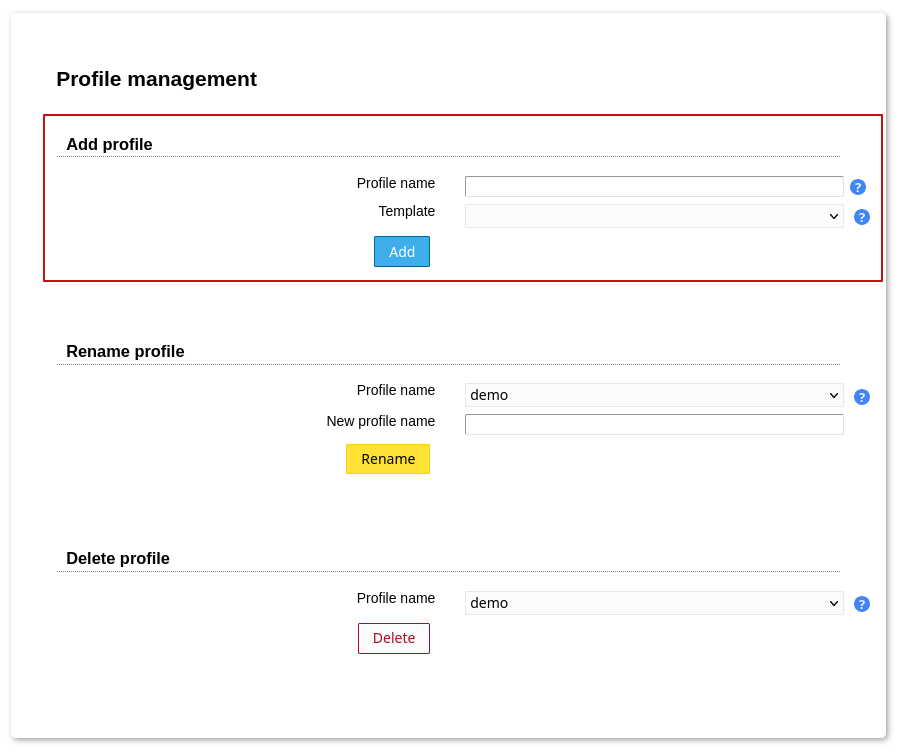 Specify a name for the new profile and enter your master configuration password (default is "lam") to save the profile.